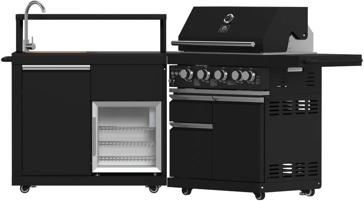 Durabilité accrue grâce à l'acier aluminisé à revêtement noir : Cette cuisine d'extérieur est fabriquée en acier aluminisé à revêtement noir, ce qui lui confère une résistance supérieure à la corrosion et une solidité qui lui permettent de résister aux conditions météorologiques difficiles et de garantir des performances durables.