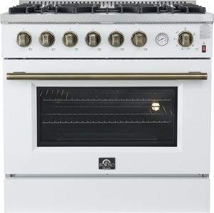 Améliorez votre cuisine avec le Marco 36" Cuisinière à gaz Alta Qualita blanche – conçue pour les cuisiniers amateurs qui privilégient la performance et la fiabilité. 36" Cette cuisinière à gaz est équipée de quatre brûleurs scellés, dont un brûleur double couronne de 67 000 BTU, idéal pour faire bouillir rapidement, saisir ou mijoter délicatement. Son four à convection de 152 litres (5,36 pi³), doté d'une puissance de 26 000 BTU, assure une cuisson et un rôtissage uniformes pour tous vos repas, des dîners rapides en semaine aux plats gastronomiques. Les grilles en fonte robustes offrent un support stable pour vos ustensiles de cuisson et permettent un déplacement fluide, tandis que l'intérieur du four en émail noir résiste aux taches pour un nettoyage facile.Read More