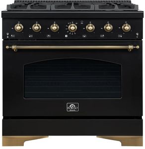 Découvrez l'alliance parfaite du style et de la performance avec l'Antico 36" Cuisinière mixte. Conçue pour les passionnés de cuisine, elle est équipée de 6 brûleurs scellés délivrant une puissance de 71 000 BTU, dont un brûleur double en laiton de 20 000 BTU pour saisir et de 1 000 BTU pour mijoter. Son spacieux foyer de 4,5 pieds carrés offre un espace généreux pour les aliments. cu.ft Le four à convection assure une cuisson et un rôtissage homogènes, tandis que la plaque de cuisson encastrée en émail facilite le nettoyage. Avec sa finition noire élégante rehaussée de détails en laiton vieilli, cette cuisinière apporte une touche d'élégance intemporelle à votre cuisine. Les grilles robustes en fonte garantissent stabilité et fluidité de la cuisson. Bénéficiant d'une garantie de 2 ans, la cuisinière Antico allie qualité professionnelle et charme vintage, devenant ainsi la pièce maîtresse de votre espace culinaire.Read More