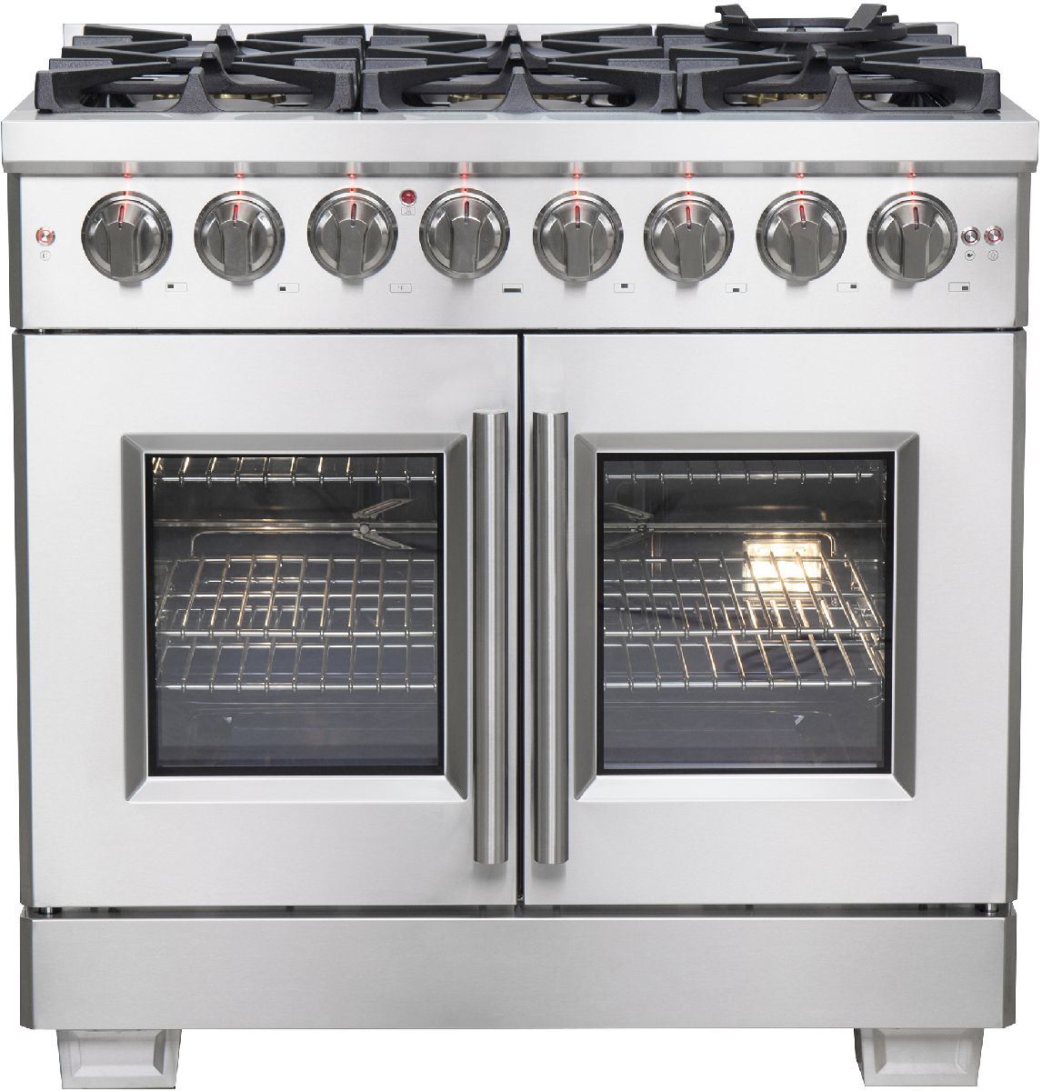 La cuisinière Forno Capriasca 36 po à porte française et biénergie harmonise le style professionnel et la performance dans votre cuisine grâce à son design durable en acier inoxydable. Les portes françaises uniques signifient que les portes ouvertes offrent jusqu'à 12 po d'espace supplémentaire pour accéder à votre four. La table de cuisson au gaz est équipée de 6 brûleurs en laiton scellés à double anneau d'une puissance totale de 120 000 BTU pour faire mijoter du chocolat ou des sauces.Read More