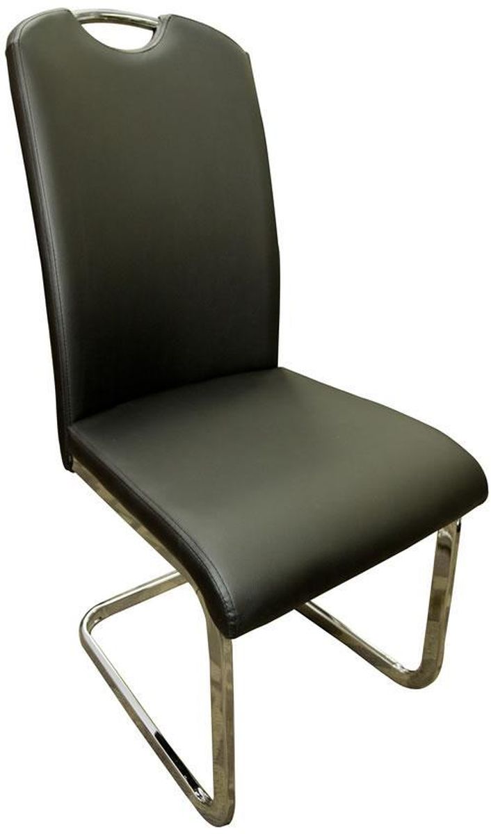 Les chaises noires, modernes et galbées, sont revêtues de similicuir.Read More
