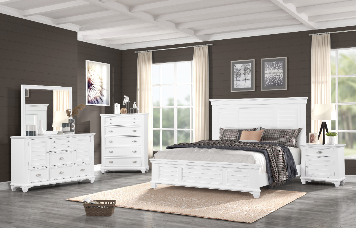 Ensemble de chambre à coucher 6 Pieces disponible en Queen et King 1 lit, 1 bureau, 1 mirroir et 2 tables de nuits extra commode Couleur: blanc Materiel : BoisRead More