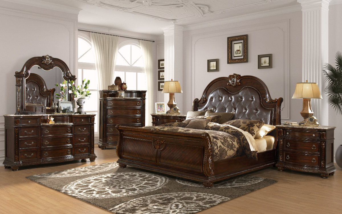 Ensemble de chambre à coucher disponible en Queen et King 1 lit, 1 bureau, 1 mirroir et 2 tables de nuits EXTRA commode Couleur: brun Materiel : Bois et dessus marbre avec tete en similicuirRead More
