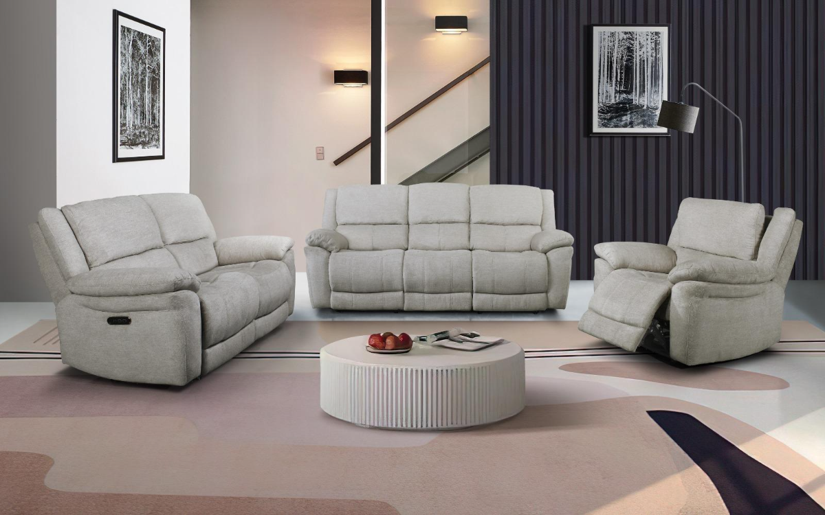 Olivia est un ensemble de salon disponible dans la couleur beige ou bien gris. Comprenant un canape, une causeuse et une chaise offrant un excellent confort grace a son tissus unique et ses fonctionnalités inclinable electrique sur tete et pieds ajustable qui vous offrira le confort dont vous avez besoin.Read More