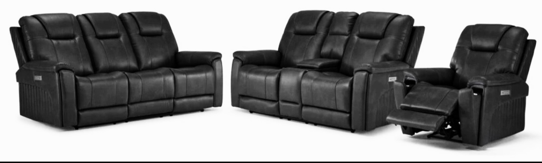 L’ensemble de sofa, causeuse et fauteuil inclinables électriques à triple inclinaison (bas des jambes, tete et bas du dos) possede toute la technologie moderne que vous pouvez souhaiter. Le sofa est doté d'un système audio intégré via Bluetooth® qui vous permet de l'associer à un appareil compatible. Au centre du sofa et de la causeuse se trouve une table rabattable avec un plateau de chargement sans fil, un compartiment de rangement, des stations de chargement avec deux prises et deux ports USB; ce qui signifie que vous n’avez plus besoin de vous lever pour recharger vos appareils intelligents ! Cet ensemble est doté de fonctions de divertissement de haute technologie, mais possède également des fonctions de confort. Les trois morceaux de cet ensemble sont dotés d’un appui-tête, d’un repose-pieds et d’un soutien lombaire à commande électrique, ainsi qu'un mécanisme de mise à plat qui vous permet de personnaliser votre assise. Les porte-gobelets dissimulés sont également dotés d'un éclairage d'ambiance.Read More