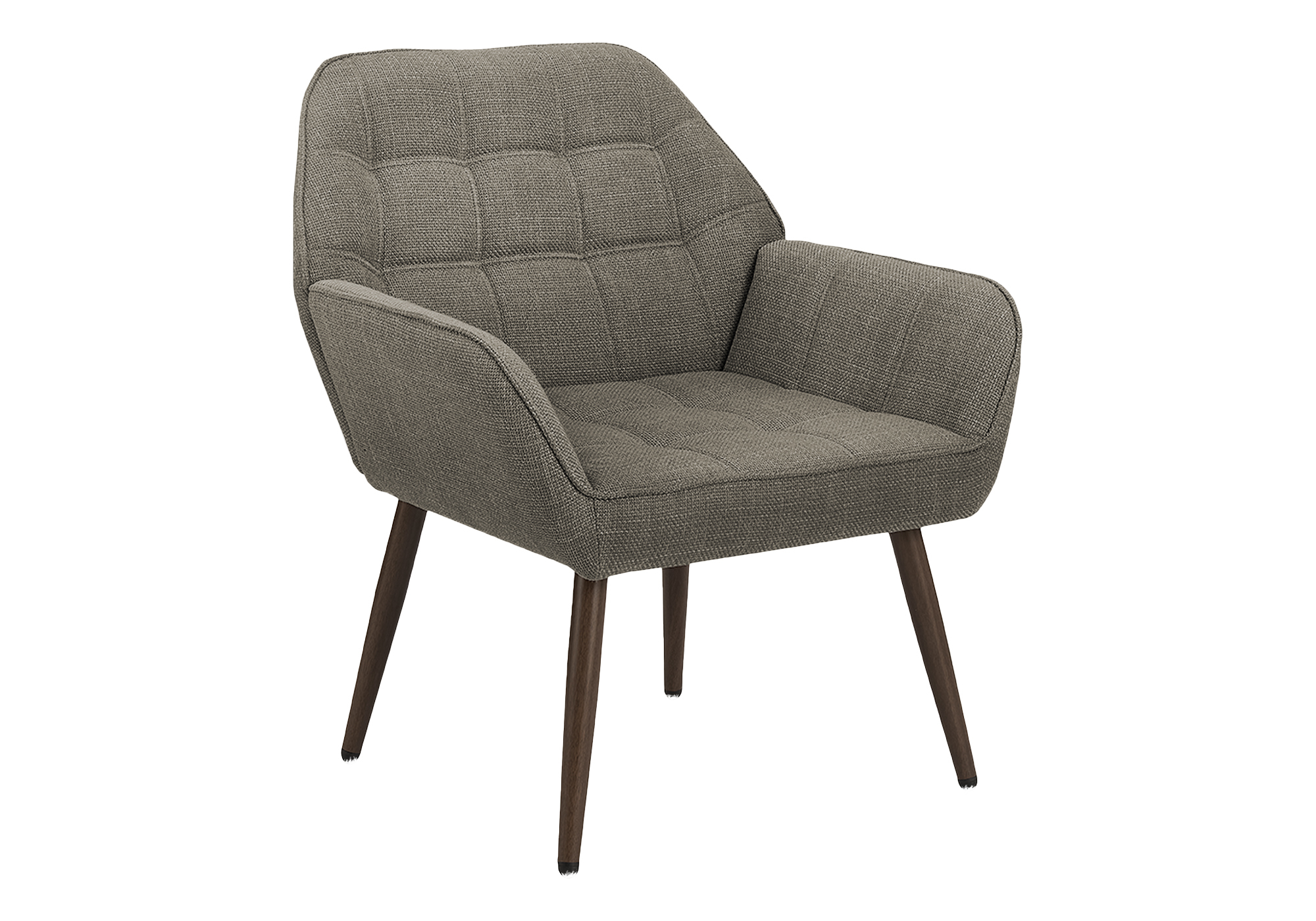 Recouvert d'un tissu doux de couleur brun clair, il apporte chaleur, confort et sophistication à votre intérieur tout en s'intégrant naturellement à un décor contemporain. Son rembourrage moelleux en mousse et son tissu au toucher doux offrent une assise accueillante, ce qui en fait l'endroit idéal pour se détendre en fin de journée ou profiter de moments de tranquillité chez soi. Sa construction robuste garantit une qualité durable, avec un cadre solide en bois d'ingénierie associé à d'élégants pieds métalliques couleur noyer, pour un soutien fiable et une esthétique épurée et moderne. Conçu avec soin pour plus de commodité, ce fauteuil est facile à assembler afin que vous puissiez profiter sans attendre de son confort et de son style. Bénéficiant d'une garantie limitée de 2 ans, ce fauteuil d'appoint vous offre la confiance dans la qualité de fabrication et un plaisir durable. Qu'il soit utilisé comme pièce maîtresse ou comme siège confortable, il offre un charme intemporel, une construction robuste et un style tendance qui complète votre espace de vie.