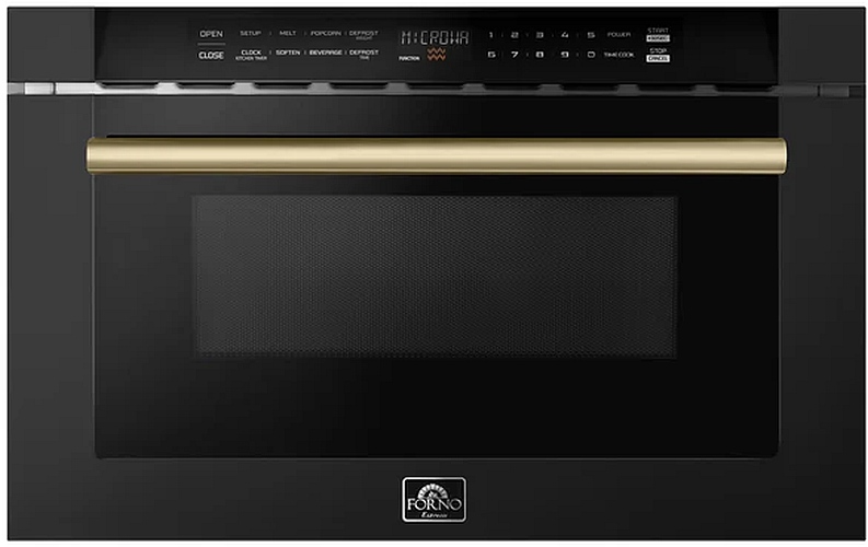 Modernisez votre cuisine avec le four à capolivera. 24" Tiroir micro-ondes, conçu pour une cuisson sans effort. D'une capacité de 34 litres (1,2 pi³), ce micro-ondes noir aux finitions laiton antique délivre une puissance de 1 500 watts pour une chauffe rapide et homogène : l'eau bout en seulement 1 minute et 50 secondes. Grâce à ses 11 niveaux de puissance, vous contrôlez précisément la température de cuisson, du réchauffage à la préparation de plats gastronomiques. Les commandes tactiles en verre et l'affichage LED offrent une expérience moderne et intuitive, tandis que les programmes prédéfinis facilitent la fonte du beurre, du chocolat et bien plus encore. Profitez de modes de cuisson polyvalents, tels que la décongélation, le pop-corn et le réchauffage des boissons. Son intérieur spacieux peut accueillir des tasses à café de 18 cm (7 po) et des plats de 40 x 40 cm (16 x 16 po), ce qui le rend idéal pour un usage quotidien.Read More