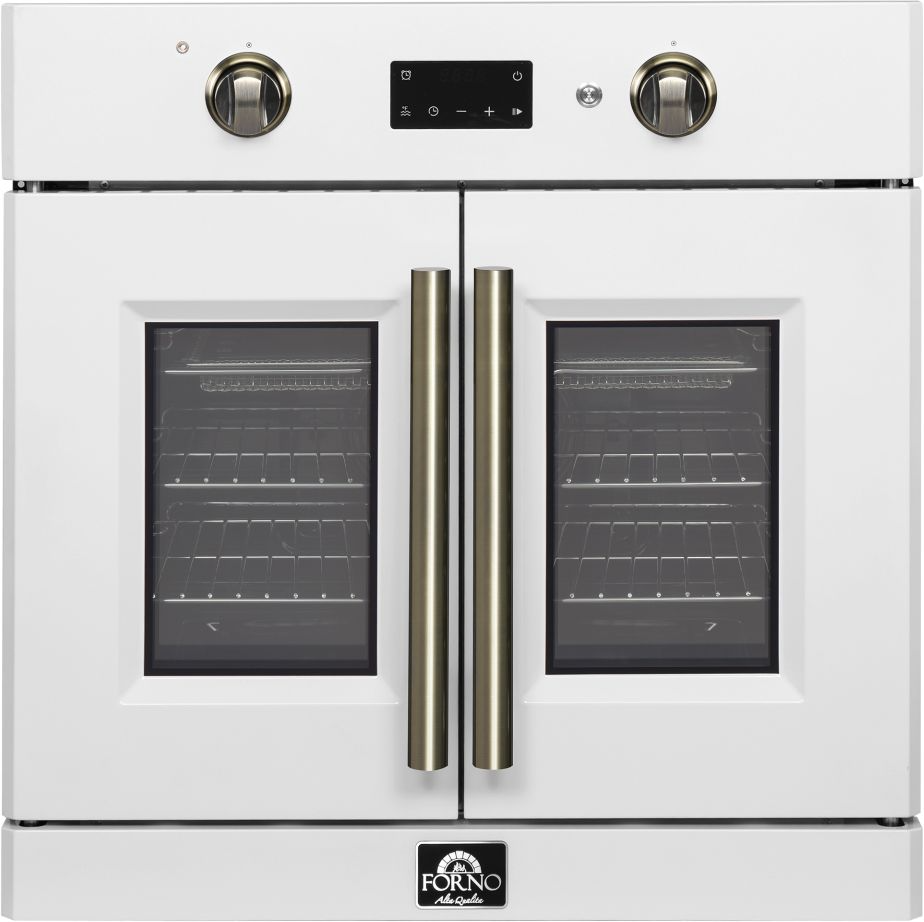 L'élégance intemporelle rencontre des performances exceptionnelles avec le four mural à porte française de 30" Forno Asti en blanc avec des accents en laiton antique. Le four à convection véritable de 3,68 pieds cubes garantit une température de cuisson parfaitement uniforme et la porte française permet un accès facile d'une seule main. Cuisinez des repas plus sains grâce à la fonction de friture à l'air intégrée, offrant un repas croustillant avec très peu d'huile. Les boutons de précision assurent une sélection optimale de fonctions et de températures, tandis que les affichages numériques à LED facilitent le réglage de la minuterie et du mode sous vide. L'intérieur en émail noir résiste aux taches et le mode autonettoyant élimine les inconvénients du nettoyage manuel. Créé pour ceux qui apprécient un mélange de sophistication et de performance, ce four transforme n'importe quelle cuisine à un prix abordable.Read More