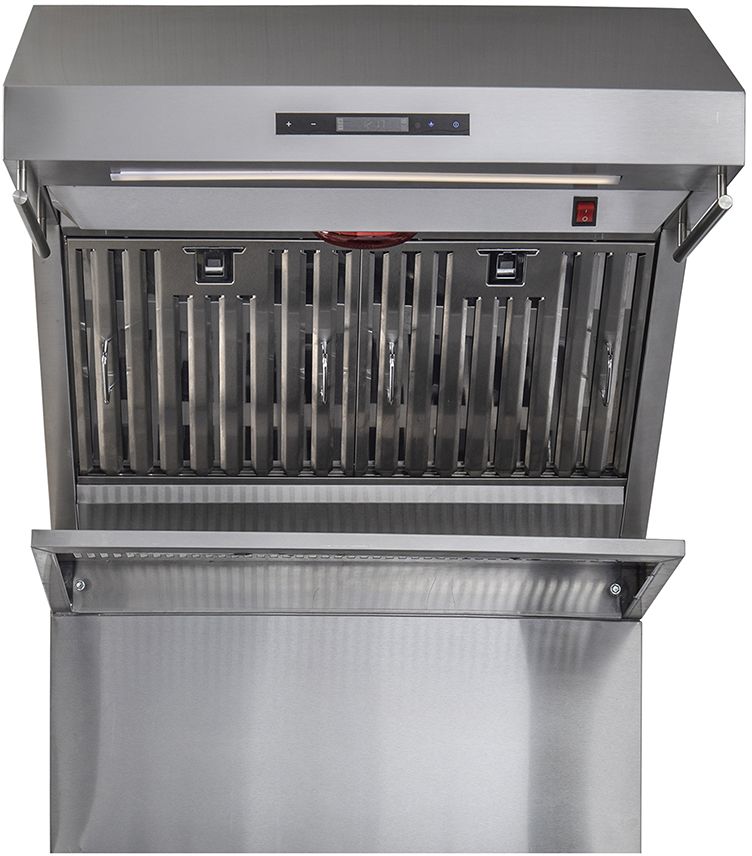 Les filtres hybrides maximisent les performances de filtration et sont amovibles et lavables au lave-vaisselle pour faciliter l'entretien. Les multiples réglages de la vitesse du ventilateur permettent de contrôler précisément le flux d'air en fonction de vos besoins de cuisson. La tablette chauffante supérieure intégrée, chauffée par trois lampes chauffantes, permet de garder les plats prêts à être servis. Le dosseret en acier inoxydable ajoute à la fois de l'élégance et une protection murale, tandis que les deux porte-ustensiles offrent un rangement pratique ou une façon élégante d'exposer les ustensiles de cuisine.