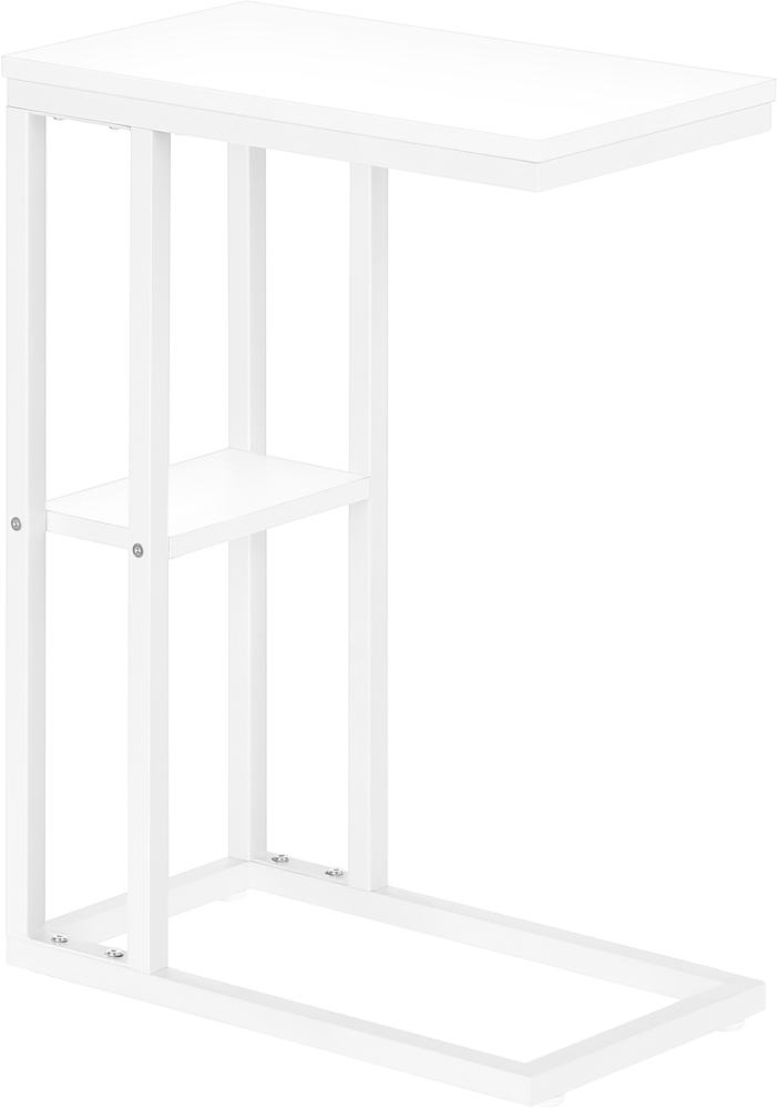 Ses lignes droites et ses angles droits donnent à cette table d'appoint en forme de C un look élégant et moderne. La table rectangulaire de couleur blanc est supportée par un cadre en métal blanc. Elle comprend une étagère sous la table permettant de ranger des petits objets.Read More